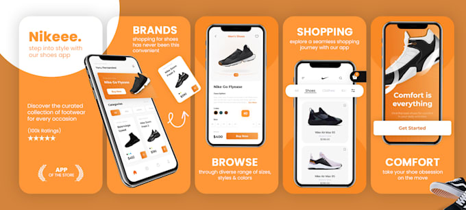 - We can create designs for all sizes of app screenshots for both the App Store and Play Store platforms.