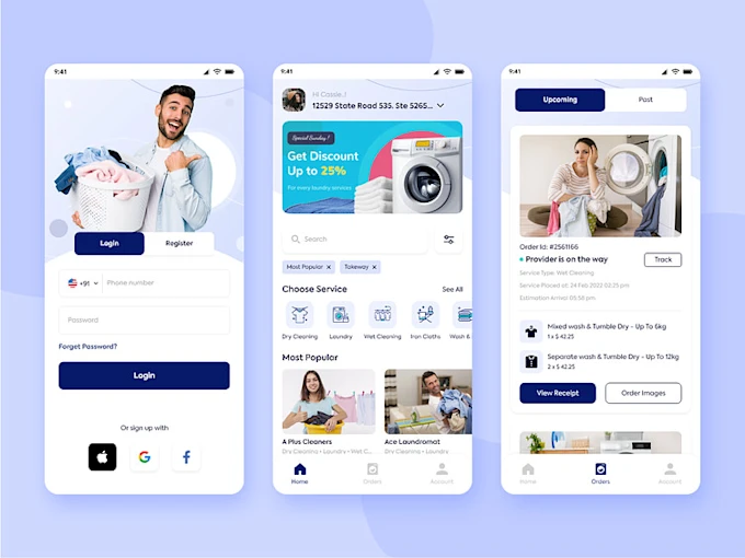 The laundry services app's user panel features are for smoothening the customers' journey for each laundry service they book;